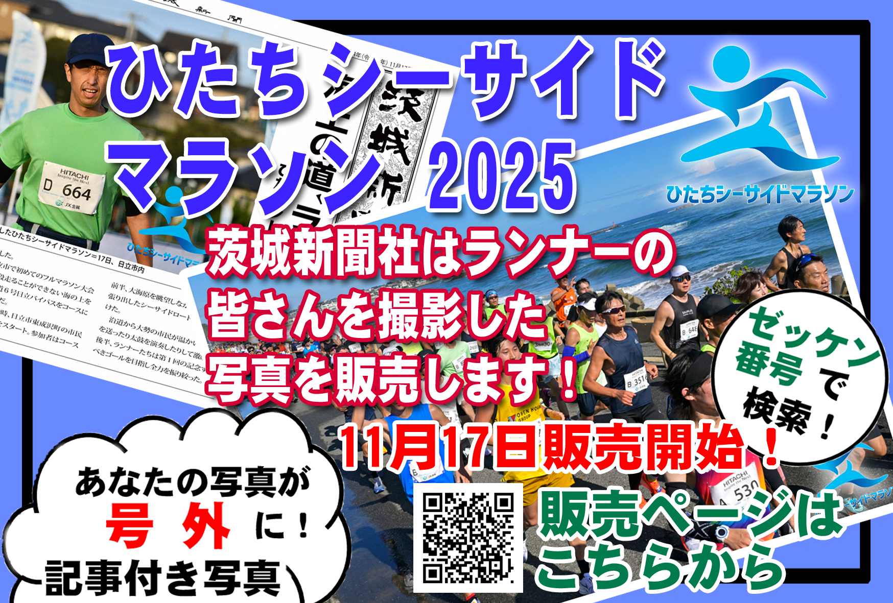 茨城新聞社では、2025年11月16日に開催される「ひたちシーサイドマラソン2025」の写真を販売します。ご購入にあたっては、ご本人かご家族のみとさせていただきます。